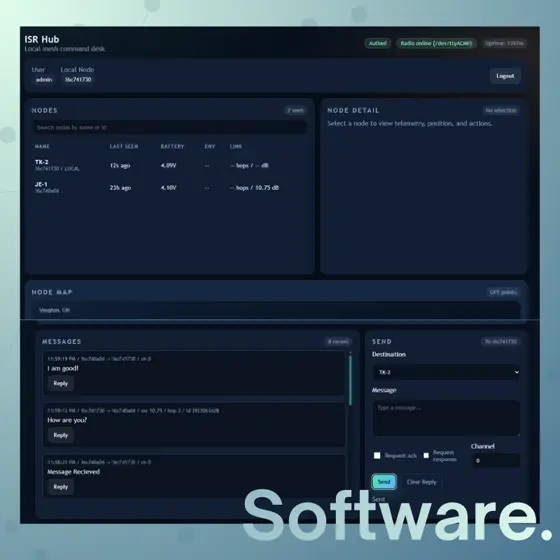FieldMesh is a compact, self-contained mesh communications and sensing system that operates fully offline. It combines low-power long-range radios with a local web dashboard so nearby devices can view, relay, and visualize data without external infrastructure.